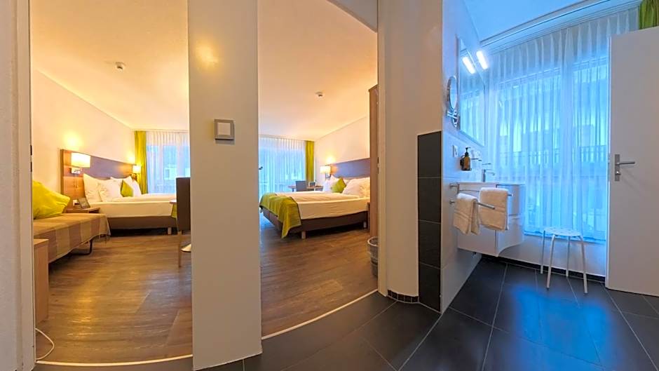 Providing bathrobes, this family room includes a private bathroom with a shower and a hairdryer. The family room provides soundproof walls, a tea and coffee maker, a seating area, a flat-screen TV with streaming services, as well as mountain views. The unit offers 2 beds.